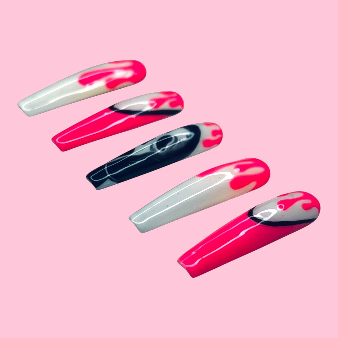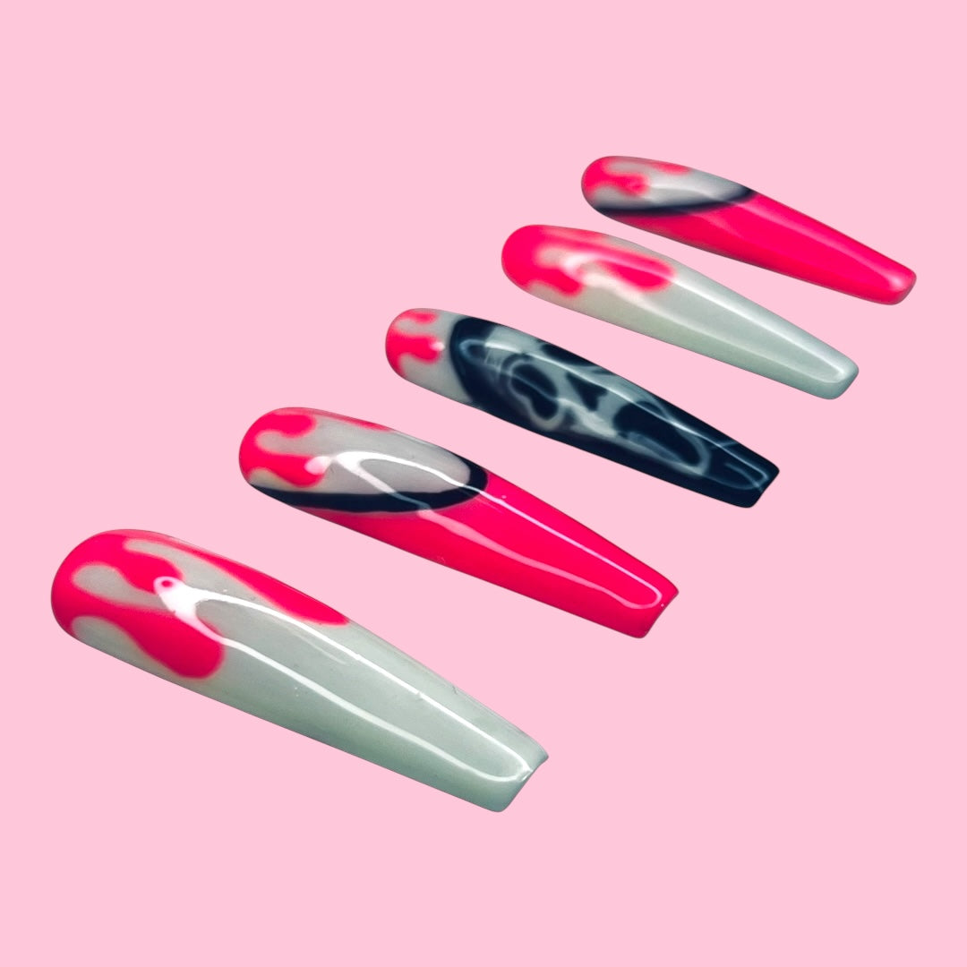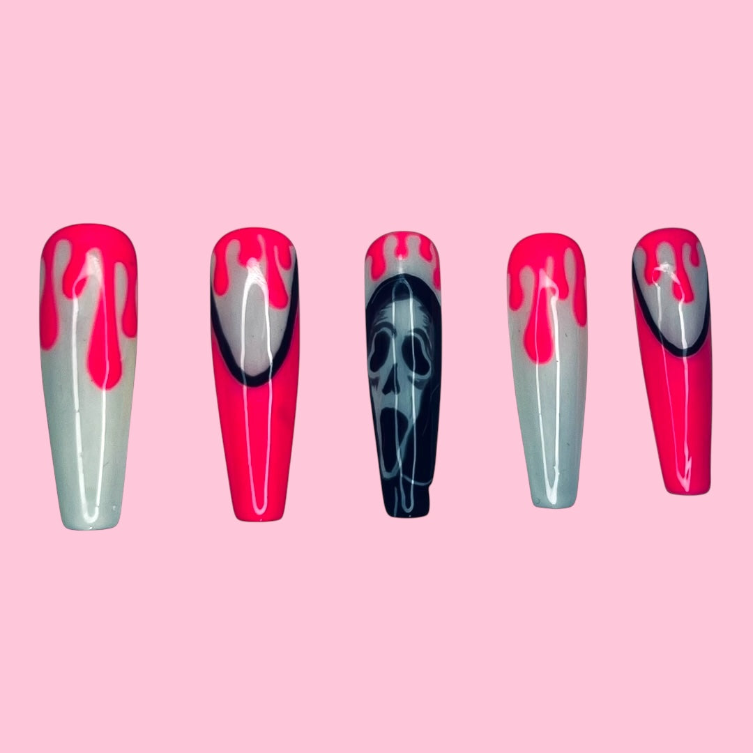 What’s your favorite scary movie? 10 piece press on nails set also set inspired by everyone’s favorite slasher. Hurry and get your set before the inventory is slashed!