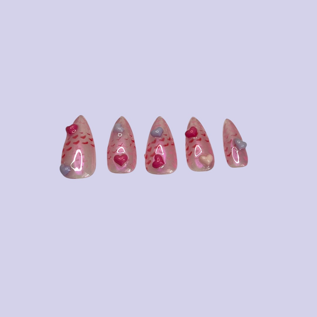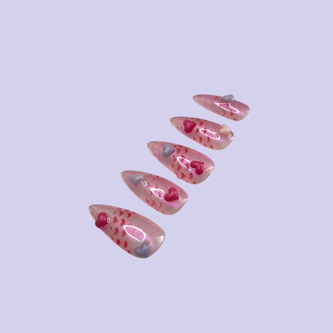 Reel in on the love season and compliment your outfit with these salon quality jelly press on nails complete with 3D hearts.